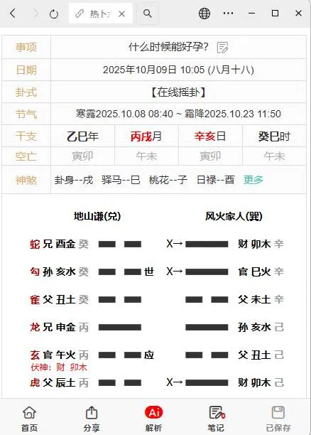 蓝123456 发表于 2025-10-9 11:03 是的那我什么时候才能怀孕啊,你帮我看看我最新一个帖子的六爻?